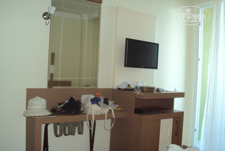 От аэропорта ехать все так же 3 часа. Лично меня дорога и болтовня гида не напрягала. Также как и родителей. Номер дали на троих в корпусе А на пятом этаже с прямым видом на море.
