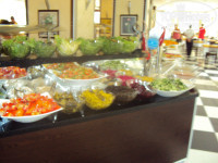 Много споров сейчас о питании. Ну знаете господа – королевских лобстеров вам здесь подавать не будут. Но еды хватало и с избытком. Салаты секонд хэнд я не ела никогда в Турции. Отдаю предпочтения свежим овощам. Фрукты были. В последние дни начали давать арбузы. Мясо, рыба, курица все было. Я не мясоед, но папа ел, ему как мужчине хватало. Места в ресторане были, все чисто. Сладости прекрасные. Писать особо много про еду не буду – я всегда дополняю отзывы фото. В этот раз специально фотографировала и завтраки, и обеды и ужины. Судите сами.