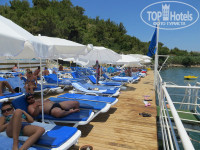 ОЧЕНЬ понравилась платформа. Лежаки всегда были, не всегда на первой линии, но это не так уж принципиально, две удобных лестницы в море и небольшой мостик для прыжков. Сразу большая глубина. Что просто замечательно, потому что не приходилось бить ноги об гальку ну и конечно отсутствие орущих маленьких детей возле берега тоже радовало. Убирают не всегда своевременно, но сказать что там особо грязно тоже нельзя. Море потрясающе теплое, чистое, с пирса можно кормить рыбок, их там много. Спустится на платформу можно пешком, можно на лифте.