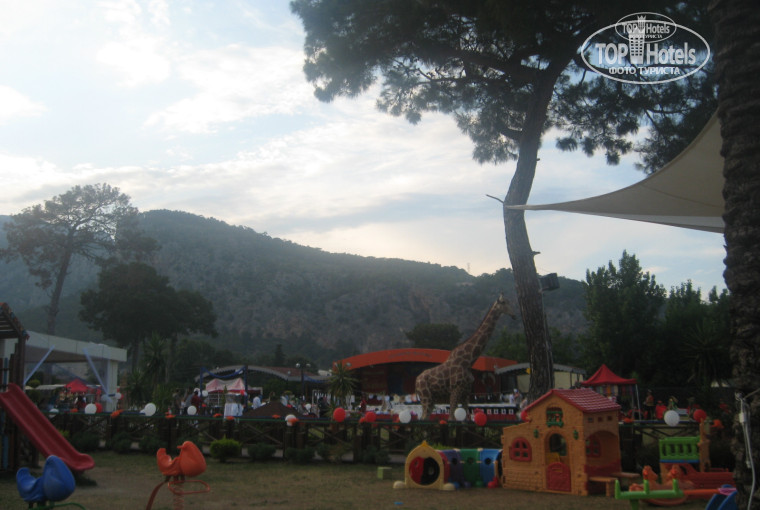 Доброго времени суток всем...Отдыхали в четвером... Подруга с сыном 17 лет и мой 7 лет.. и тому и другому было весело.. Анимация просто супер! Шеф Хасан... это уникальная личность.. приходишь вечером посидеть 5 минут и пойти спать.. По итогу остаешься до конца и животы болят от смеха. Вот уж точно человек на своем месте!. Хореограф Александра умничка. Паша очень общительный, дружелюбный..девочки аниматоры все молодцы. выкладываются на 100%. Детская дискотека сыну понравилась...но я мало на них присутствовала. от количества детей и визгов голова шла кругом.. За сына переживать не приходилось.. территория очень удобная, быстро сориентировался и гулял без меня.. утром спал и приходил на пляж сам, даже обедали иногда отдельно.. если дома у нас с едой проблемы, то в отеле аппетит был что надо!..детская площадка замечательная, Территория просто шикарная!!!!!!!!!! красота! море, а вокруг горы... впечатление остались самые лучшие. Очень ухоженно, чисто. Бассейны , горки замечательные..Что понравилось так это то что хозяин отеля всегда присутствует на территории. купался и в бассейне и на море.. и питался с туристами.. Еда. для любителей мяса будет сложновато.. много курицы, овощей, рыбы, салаты..Сладкого просто море...все очень вкусно! напитки..соки юпи))) есть кола, спрайт, чай, кофе.. фрукты, арбузы..мне очень нравилось искупаться в море пока все спят и выпить чашечку кофе на качелях...эх....Менеджер ресторана Сурат бей то же удивил.. Убирается вместе с офицантами и мусор подбирает..шуршит только так. и питается так же с туристами той же едой..Очень внимательный. Да впрочем все кушают там же.. и аниматоры, и гиды, и с рецепшена...