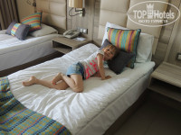 Отдыхали в этом отеле в июне, с мужем и ребенком 4 года. В Турции были первый раз. Отель нам очень понравился. Обслуживание хорошее, в номерах убирались каждый день, правда обещали постельное белье менять раз в 3 дня, но мы жили неделю, никто так и не поменял.