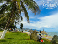 На дальнем пляже красивое море, волны, но иногда плавают водоросли. Любителям небольшого экстрима можно покататься на скутере или попробовать парасэйлинг. Последний оставил неизгладимое впечатление! Стоимость: 700 донг (около 1000 руб. - большой круг с парашютом над морем и островами). Совсем не страшно, буря положительных эмоций!