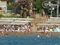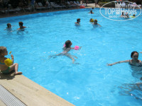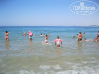 От домика до пляжа минуты 3 ходьбы. Мы первую неделю практически жили в море и в бассейне, пока дети не научились плавать. Лежак занимали, где только вещи наши лежали,а сами по полдня в воде или около. В отеле девчонки не вылезали из бассейна и им нравилось нырять в него. Практически не болели. За два дня до отъезда малая холодной воды напилась и горло заболело, но быстро антибиотиком залечили сами и втык дали ей - последний день только в лягушатнике разрешили без ныряния. Сам видел как в бассейн рядом с горками сыпали дезинфицирующие таблетки и замер воды делали.