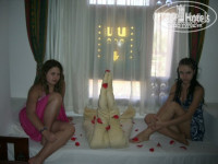 В отеле много иностранцев, в основном это немцы, итальянцы, есть англичане, но русских тоже хватает, я нашла там много друзей, с которыми мы весело проводили время! Общалась с персоналом в основном на двух языках: русском и английском, на ресепшене с русским очень туго, но английский - без проблем! В баре русский понимают лучше, во всяком случае, старательно запоминают каждое новое слово. По многим очень скучаю((( Персонал вежливый, обходительный, дружелюбный и весёлый, постоянно подшучивали по-доброму, было много весёлых моментов!!! В номере постоянно плели что-то из полотенец, нам за неделю раза три плели точно! Убирались тоже каждый день, к этому никаких претензий!
