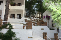 Отель расположен на горе, т.е. к морю спускаетесь быстро, а обратно немного медленнее... Зато вид из ресторана - это что-то с чем-то!!! От ресепшена до ресторана есть лифт, кому тяжело ходить, но можно и по лесенкам, заодно и зарядка. Территория вся в зелени, в цветах, выше отеля только лес, сосновый. Воздух просто пьянящий.