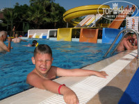 Бассейны. Горки хорошие, в меру высокие. Вода во всех, кроме детского (особенно в последние два дня), чистая. Возможно, «благодаря» детскому бассейну дети вернулись в Москву с коньюктивитом и подцепили какой-то вирус (горло, насморк, кашель).