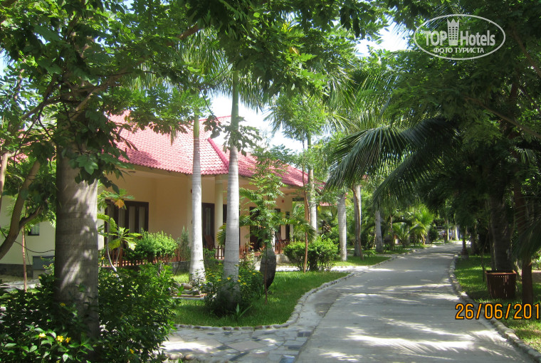Отдыхали с мужем с 14.06. по 26.06.2013г. Замечательный отель! Аэропорт в 20 мин езды. До города 20 мин. Четыре раза в день ходит в город бесплатный автобус. Увезут и привезут всех. Нужно будет, 4 автобуса подадут. Территория огромная, зеленая. С утра и до вечера трудятся вьетнамцы – пропалывают, сажают, подрезают, поливают. Всю прелесть понимаешь, когда возвращаешься из города. Тишина, запах цветов и тропических растений. Все дорожки затенены пальмами. Огромный бассейн.