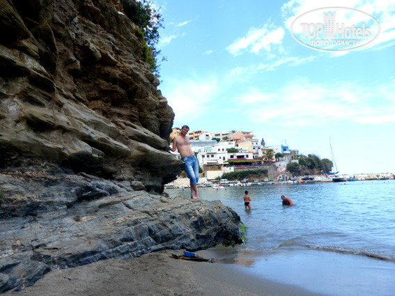 Как и на пляже в Бали, где никогда не бывает штормов или перебаламучиваний - такова специфика бухт. Кто едет с детьми - несомненно, вам сюда. Все удобства бесплатны, за 1 евро (вообще-то, эта услуга бесплатна, но нужно же как-то отблагодарить человека, бегающего туда-сюда по лестнице, небольшой, кстати) служащие пляжа доставят вам хоть пива, хоть колу. Наверху много супермаркетов (вообще, на Крите всё является супермаркетом, даже если он размером с каморку) и сувенирных лавок. Цены - то, что нужно, дальше не ходите. Между прочим, по приезду домой, перебрали подарки и не нашли ни одного китайского товара! Заходя в магазин, улыбайтесь, разговаривайте (неважно на каком языке, вас поймут). Запомните волшебное слово: "эвхаристо" (спасибо) и всё будет хорошо. Если вы понравились, после всех торгов вам обязательно принесут бонус: то ли зажигалку, то ли магнитик. Но таким образом хозяева подчёркивают своё уважение к вашей персоне. Кстати, будьте готовы к различным дополнительным неожиданностям. В той же таверне Митос (работает украинка Светлана, проблем с общением нет), уже после расчёта, вам подадут графинчик с раки (закусь тоже бесплатна :-)). Мы поначалу настороженно отнеслись к водке после возлияний. Но потом поняли всю прелесть момента: после переедания (на Крите не переесть невозможно), 50-100 грамм раки полностью очищают желудок от тяжести. Моя жена так и прозвало это действо: "Мезим" доставлен!