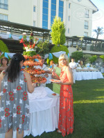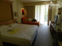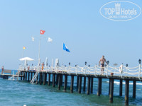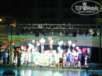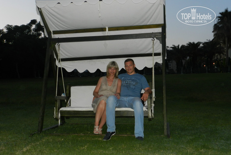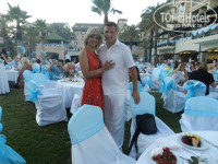 Всем доброго времени суток! Отдыхали в отеле с мужем с 13.06 по 21.06.2013. Мы остались в восторге от отеля (в Турции не первый раз...есть с чем сравнивать). Итак...по порядку: в отель нас привезли около 11.00...и...хотя заселение по правилам в 12.00 нас заселили уже через 15 мин. Очень порадовало,что персонал на Ресепшн прекрасно говорит по русски! В отеле не так много номеров с прямым видом на море, так что нам достался вполне стандартный уютный номер, с балкона можно было видеть "кусочек" моря. В номере: телефон, фен, халаты, тапочки, чайно-кофейный набор, маленькая плазма (1 русский канал есть).Вообщем номер полностью нас устроил! Убирались каждый день, полотенца меняли каждый день, постельное белье 2 раза в неделю нам поменяли. Весь персонал отеля-это доброжелательные и улыбчивые люди!!!Весь сервис на высшем уровне! Что не попросишь-никогда не отказывали! Территория отеля: по размерам - средняя ...очень красивая и очень ухоженная! 2 бассейна (один-верхний-для релакса..там тишина, второй внизу-возле него бар музыка играет, водные горки),детский бассейн, большие поляны с гамаками, подушками, качалями для отдыха в тенечке, амфитеатр для проведения вечерних шоу. Вообщем-тут все тоже на 5! Питание: это вообще отдельная тема....учитывая то, что кушать и пить в отеле можно чуть ли не 24 часа! :))). Выбор блюд большой,вполне стандартный для отелей класса 5*: мясо(баранина, телятина, курица), рыба(несколько видов), салаты(их много), фрукты(яблоки, абрикосы, персики, ананасы, клубника, черешня, дыня, арбуз, апельсины), овощи(много), всякие вкусняшки , приготовленные на гриле(котлетки, стейки, филе ягненка)...ну и конечно же сладости и мороженое!!!Порадовало, что соки были ТОЛЬКО из тетрапаков или свежевыжатые (в ресторане стоит соковыжималка-подходишь и сам себе делаешь фрэш), турецкий кофе (варят в Бистро у верхнего бассейна) и турецкий чай-очень вкусные! В баре на пляже после 12.00 можно перекусить свежеприготовленными хот-догами или шаурмой! За неделю нашего прибывания в отеле проходило 2 тематических ужина-турецкий ужин (преобладали острые блюда) и русский ужин ( с картофельными дранниками) :))). Еще мы попали на ГАЛА УЖИН, который проходит в отеле раз в две недели! Это целое событие для персонала и для гостей: вокруг бассейна красиво накрываются и сервируются столы, в центре бассейна сооружается сцена, на которой вес вечер живая музыка...танцы, разнообразие блюд и их оформление тоже на высшем уровне. В конце вечера-представление персонала и фейерверк! Очень красиво...Вообщем объедались мы всю неделю по полной программе и уже просто мечтали хотя бы на часок почувствовать себя голодными :))))). В этом отеле это просто невозможно! :)))) Развлечния: до обеда мы обычно на море были, там был пляжный волейбол, боча. Хочешь-участвуешь, хочешь-нет, никто к тебе приставать и вытаскивать не будет :) После 14.00 мы проводили время у бассейна и там начиналось много всего: дартц, стрельба из лука, водное поло, танцы живота. Победителям каждый день вечером вручали медали...это очень здорово! Мы одну привезли-муж выиграл в дартц). Для детей тоже много всего было-футбол около бассейна, отдельная площадка, вечером-детская дискотека с призами! После детской дискотеки были различные шоу-программы..каждый день разные: современные танцы, китайский цирк, монгольские акробаты, 1 раз была вечеринка на пляже с конкурсами.После