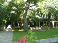 Отель нормальный - отдыхали 2 недели в июне.Разместили сразу (приехали примерно в 10 утра), в номере все работает, территория красивая, очень зеленая,под пальмами стоят столики и плетеные кресла, есть небольшая дет. площадка, бассейн с морской водой, пляж свой, вход в море пологий. песчаный, дальше камушки, но не острые, над ними уже плыть можно, дети по песку бегают босиком, плещутся с удовольствием. Места и у моря, и у бассейна хватало всем.