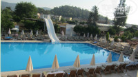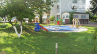 Территория ухоженная, но почему-то последнюю неделю поливайку стали включать днем или ранним вечером, так что вся детская площадка в самое игровое время не просто залита водой, а ею постоянно орошается. В общем, это не понравилось. А так все очень красиво, ухожено. Бассейны попахивают хлоркой, но вода чистая. Правда, на дне лежат камушки в небольшом количестве, видимо, их пылесос (чистят большой басик каждый день, а вот детский не знаю) не в состоянии их затянуть внутрь. Еще хочу честно отметить, что часть решетки, куда вышедшая из берегов вода сливается, отламывалась (это у них постоянно), и я заглядывала внутрь этого канала, по которому, как я понимаю, вода назад течет в бассейн: там зеленая тина. Но так подумала, сам бассейн чистый, вода на вид (в пластиковом стакане) абсолютно чистая, так что в целом ситуация мною была оценена как «пофиг, сойдет, не пьем же».