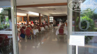 Вот практически полное меню для тех, кому важно (кому неважно, абзац пропускайте): утром яйца жареные и вареные, часто блинчики (пекут при вас) и гренки, несколько видов хлопьев, молочный суп, два вида йогуртов и еще что-то несладкое, но вкусное, молочное типа бифидока, я не сильна в молочной продукции (йогурты и бифидок налиты в глубокие чаши - розовая субстанция и две белых Они стоят на столе, кажется, с овощами и колбасами-сырами, я до последнего дня думала, что это соусы типа майонеза:) Колбаса и ветчина соевые, но мне нравились, сыр обычный 2-3 вида, сыр брынза. Есть творог, он тоже в чашках лежит такими комочками:) Утром всегда есть какие-то свежие овощи, в основном помидоры, огурцы. Есть булочки с кунжутом и без, варенье 5-6 видов и вафельные корзиночки для них. Стоит кофе-машина, где есть не только кофе (черный, капуччино, латте),но и какао (очень вкусно шоколад с молоком),кулер с водой. Внутри ресторана есть бар - там газировка и спиртное.