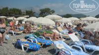 Пляж. Море замечательное: теплое, чистое, соле-е-е-ное Я с удовольствием купалась. Вход пологий, галечный. В нескольких метрах от моря полоса из крупного песка (детям сложно из него что-то слепить, замка не слепишь, рассыпатся, можно только формочки, и то плохо). Много мусора в самом песке, с ребенком копали песочек, я окурки прямо складывала кучкой.