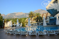Отдыхала с подругой и с ребенком, жили в домиках, не пожалела а даже обрадовалась, тихо, спокойно...На ресепшене дали 10$ поэтому домик был сразу около перехода, бассейна. Работало все просто безупречно и кондиционер в том числе...бар пополняли каждый день, уборка ежедневно, постель меняли ежедневно, причем чаевые мы оставили один раз 1$. Нам было весело, т.к ныряние с понтона и водяные горки это круто...Хотелось бы отметить,берите с собой права, мы брали машину напрокат прям в самом отеле около выхода стоит столик там сидит парень Сабир. Нам очень понравилось мы катались целый день, ездили в Анталию в аквариум ( ничего так можно один раз посмотреть), и были в аквапарке прям напротив аквариума ( просто кошмар ) я была в Турции в аквапарке в Троянском коне вот там весело.Радовало одно, что на машине не надо никого ждать развернулся и уехал, были в Кемере в старом городе Фаселис красота, чуть далше есть еще один старинный город, но к сожалению не хватило временни, зря потраченного в аквапарке. Были на местном рынке, узнали от жителей, там все гораздо дешевле. По поводу питания всего очень много...По поводу фруктов, не знаю арбузы, дыни, яблоки,апельсины, абрикос Россияне были не очень довольны фруктов мало, т.к. я с Украины причем прилетели в конце июня я просто всех фруктов реально объелась еще дома, плюс как я уже писала мы были на рынке и купили всего за копейки, поэтому меня это ваще не напрягло... Анимация только так себе, но мы находили чем себя развлечь. Еще там очень профессиональный парикмахер, подруга красилась и стриглась просто супер...