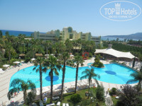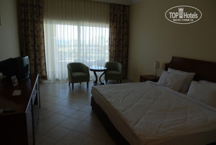 Очень понравилась территория отеля, красивые пальмы, цветы, ухоженная трава и растения на 5+! Отличный сервис, быстро убирают стаканы, мусор, т.к я каждый день скидывала все полотенца в ванную, мне и меняли их каждый день! А вот как написано, что должны были поменять постельное белье 1 раз в 3 дня, в итоге ни разу не поменяли за неделю! Следующий для нас шокирующий минус - это ПИТАНИЕ!!!!!! Не всегда на обед было что-то мясное, а на ужин что-то одно, могло быть говяжье рагу, или котлеты, курица, на этом мясное заканчивается, как повар несет мясной поднос, все налетают на него, а один случай меня рассмешил муж положил мясо, так к нему подлетает женщина с разъяренными глазами и в впопыхах спрашивает - "Где Вы мясо брали????" Такое было каждый день! У нас есть с чем сравнивать поэтому мы в шоке! Закуски: 3 вида колбасы, овощи (великолепные сладкие помидорчики черри), 4 вида сыра, 2 вида маслин и оливок и 4 вида не понятных салатов из вчерашних продуктов которые остались, заправленные майонезом! Совершенно не вкусные десерты из манки и бисквита. Из фруктов арбузы и дыни, совершенно безвкусные, но зрелые и сочные, видно сорта такие. Один раз дали черешню потрясающую! Давали персики, я их не брала, твердые при твердые.