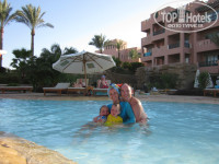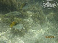 6. Пляж: Сначала нужно было дойти по красивому подземному переходу до дороги на пляж (у кого маленькие детки для спуска к подземному переходу есть лифт). До пляжа добираться минут 5 обчным шагом (1 минуту на машинке). Развозка была чуть ли не каждые 5 минут. Вход в море - как и везде в Красном море. НО поразило ОГРОМНОЕ количество рыб, плавающих на мелководье. Рыб частенько прикармливали булочками и это было очень забавно. Вода чистейшая, прозрачная - для деток просто суперски. На пляже есть понтон откуда можно было понырять и нормально поплавать. Там как раз расположен коралл в виде обрыва и возле него было всегда множество рыбок.