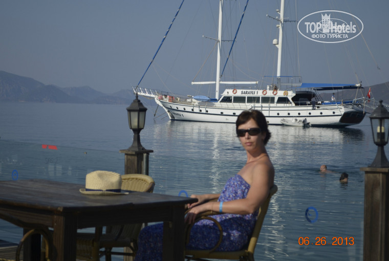 ЕДА: когда мы приехали нам сказали, что наш бар-ресторан "ЛОТОС", мы можем кушать там и в основном ресторане, решили в первый день сходить в ЛОТОС, поужинать, не вкусно и мало, после ужина в ЛОТОСЕ пошли в основной ресторан, и там уже покушали. В первые два дня вроде бы еда нормальная, но когда в течении 7 дней подают одно и тоже, то уже и в ресторан ходить не хотелось. Из фруктов, за весь отдых в Турции, подавали дыню,арбуз, сливу(2 раза)мелкую, яблоки (2 раза) мелкие. Из сладостей вроде бы было много всего, понравилась пахлава, к сожалению рахат лукум нам не предлагали. Мясо давали один раз (отбивная из говядины под соусом), жевать приходилось долго. Каждый день жареная рыбка(местная форелька), другой рыбы в этом отеле нет (приехала с Турции побежала на рынок за клубникой, персиками и черешней). ООООчень разочаровалась я в питании в 5*отеле.