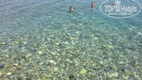 Территория отеля очень приятная, в море чистейшая вода, ни разу не было проблем с лежаками, свободные есть всегда, при том отель был заполнен практически на 100%. Вход в море каменистый и без специальных водных "тапочек" не камильфо иначе можно соскользнуть, правда каменистось заканчивается через 3-5 метров после захода в воду, дальше песок. У нас были такие "тапки" и проблем не было, у отеля их продают по 5-10 у.е. Рядом есть пантон, с которго я по большей части и прыгал в воду.
