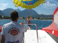 Мы плавали на катере, летали на парашюте, плавали в бухтах, на катере нас катали замечательные ребята, посетили Динопарк, аквариум он очень большой, красивый, были в бане, баня это тема.................