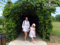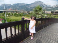 Территория отеля замечательная!!! Переход к морю не утомительный сопровождается прекрасными видами на горы и окружающие окрестности. Мест на пляже и возле бассейна хватала всем, очередей на горки небыло. Здесь же находится зоопарк (гуси, курицы, кролики), каждое утро с завтрака приносили им булочек и ребенок с удовольствием кормил. Возле отеля можно сказать релакс зона, детский клуб,а возле моря где находятся бассейны очень оживленно. Там проходит вся анимация.