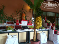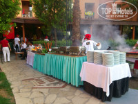 Обед и ужин более интересны. На гриле постоянно жарят какое-нибудь мясо, обычно очень вкусное. Чаще всего курица, но была и индейка, и печень, и телятина. Если не хочется подождать пару минут в очереди, пока поджарится очередная порция мяса на гриле, то есть несколько видов тушенного мяса и рыба. Два раза в неделю на ужин на улице выставляют мангалы и готовят что-нибудь необычное: кебаб, баранина, ягненок, рыба. Один раз делали суши, и было очень много морепродуктов. Очень вкусная выпечка. Большой выбор фруктов. Каждый день арбуз, дыня, бананы, яблоки, персики, нектарины, апельсины и грейпфруты. Практически через день добавлялись черешня, виноград, свежий инжир. Мороженое в ресторане на ужин, в баре у амфитеатра каждый день с 16 часов.