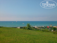 До моря идти прогулочным шагом 4 минуты. Пляж замечательный, вход в море пологий, ни одного камушка, даже ракушки попадаются совсем редко. На пляже разносит матрасы очень доброжелательный мужчина, всегда с песней, с улыбкой, с пожеланиями хорошего дня. Если что, поможет найти свободный лежак. Хороший бар на пляже, из него открывается отличный вид на море и можно укрыться от солнца.
