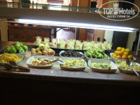 Про еду в ресторане,поразило то,что у немцев свой ресторан и детская площадка,нашему брату туда ни - ни. (С этим я столкнулась в первые) и опять же,разносят напитки красным браслетам. Еда на МОЙ взгляд показалась однообразной. Был ужин из море продуктов,я их там не увидела как в других отелях. Были порезанные соломкой кальмары с овощами,по 2 шт. крабов. В другом отеле лежали блюда к королевскими креветками,крабами,большие куски кальмаров. Разнообразные блюда,дохадило до того,что не знали,что выбрать,терялись в выборе,а тут всё понятно - картошка.рис,макароны,фасоль,мясо. И завтрак МНЕ показался скудноват,опять же я просто сравнила с другим отелем. Выпечка вся на один вкус,только формой отличается,выбор маловат,тортиков нет :( ток пироженки. Фрукты яблоки разных сортов,каких у нас завались,апельсины - то,что у нас уже не едят, финики,персики давали дня три, дыня и арбуз были 1 день и то какие то вялые,мне не понравилось. Не то,что у нас,разрежешь дыньку,от запаха слюной давишься :) Но самое главное,что не одного случая с отравлением.