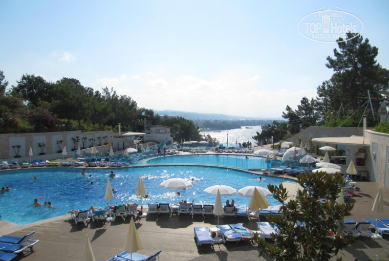 Добрый день! Отдыхали с мужем и детьми 5 и 9 лет с 24 июня по 4 июля 2013г. Приехали в отель в 5 часов вечера, нас сразу отвели в приготовленный номер "стандарт" с видом на дорогу и стоянку. Попросили поменять с видом на море - бесполезно, сказали, что свободных номеров нет. Более того, этот стандарт был настолько крошечным, что кровати занимали 70 % пространства всего номера, без проходов между 4 кроватями, с небольшим проходом на балкон. Вчетвером находиться в таком номере оказалось просто невозможно. Мы решили не портить себе отдых, и попросили 2-хкомнатный номер Suit. Нам предложили 3 варианта - с видом на море и бассейны - доплата 25 долларов в сутки, с видом на дорогу - 20 долларов в сутки, и номер для инвалидов (без ванны, с душем), с видом на дорогу - доплата 15 долларов в сутки. Мы решили не экономить на комфорте и выбрали первый вариант - с видом на море и бассейны, на -2 (2) этаже.