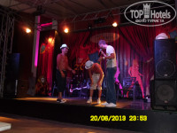 Бар с 21ч на террасе. Всё то же...Только "один бокал в одни руки" и нельзя ничего приносить с собой. Кальян от 7$. Если хотите сидя посмотреть анимация-шоу - места за столиками надо занимать уже в 20-30. VIP-места как правило уже всегда зарезервирована для турецких товарищей. И обязательно танцуйте общие отельные танцы, а то Ахмед расстраиватеся, когда люди откровенно леняться.