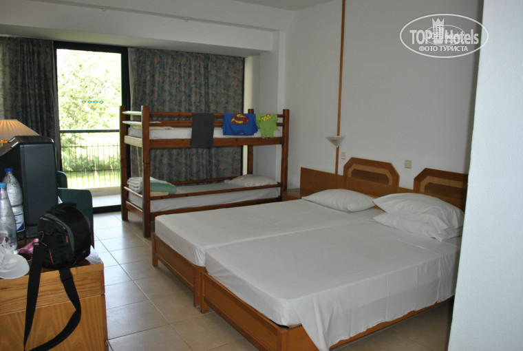 Впервые за все время путешествий мы столкнулись с тем, что в этот отель везли целый автобус. Конечно перепуганы были тем, что расселение займет уйму времени, т.к. толпа такая, но Пегас все предусмотрел и за это им отдельное СПАСИБО! Пока мы ехали с аэропорта, а это минут 25, заполнили анкеты на расселение и прибыв в отель пошли спокойно ужинать, а придя на ресепшен нас уже ждали ключики!!! Наш рейс был задержан и поэтому утомившись мы все двинулись в номер. Войдя в него все четверо были огорчены его размером. Но дети увидели плюс в двухяростной кровати и хором закричали о протесте обмена номера. Бросив все и сходив в душ, мы отправились в полной темноте в сторону моря. Его мы нашли, но вода оставляла желать лучшего....ледяная. Потом прогрелась, но все равно была прохладной, + 22,23. Побывав на вечернем шоу и в баре мы отправились спать. На утро, пройдя окрестность отеля, не нашли ничего плохого, только позитив. Позже предложили другой номер, но в этом не было смысла - он был по величине такой же!