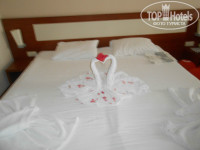 Заселили быстро, хотя прибыли в 10 утра. Номер на 1 этаже, просторный, чистый. Русскоязычных каналов насчитали 13. Питание супер, всего достаточно и все вкусно. Персонал - молодцы, так держать. Ребенок чувствовала себя маленькой принцессой, официанты дарили цветы ей утром, интересовались ее настроением, приносили детские коктейли. Территория небольшая, но все ухожено и аромат такой приятный от цветов.