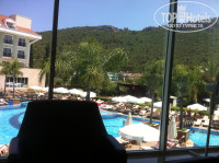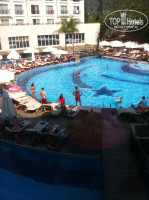 Прилетели с отдыха пару дней назад. Летали компанией пять человек. Отдохнули отлично, каждый остался доволен. Хороший отель, не старый по сравнению с другими. По приезду нас сразу заселили без проблем, причём так удачно, что окна выходили не на шумный бассейн, на противоположную сторону, где открывается шикарный вид на горы, спасибо девушке с рессепшна, кажется её зовут Ирина. Номер оказался уютнее, чем я ожидал. Из минусов (без ложки дёгтя никак, извините) выделю отсутствие полок для одежды, вешалок в шкафу было всего 5 штук, а нас в номере три человека, пришлось вещи в чемоданах держать, горячая вода бывало иногда пропадала ненадолго, минута или две и ещё один минус, хотя возможно это везде так, бар-холодильник, пополняли раз в неделю, а мне так понравилась их местная «миринда» и я хотел, что бы они каждый день её ставили в наш холодильник. Уборщицы очень приветливые, особенно одна, среднего роста и со светлыми волосами, жалко имя забыл. Она знает русский язык и очень хорошо убирала. Постель и полотенца, каждый день. Не скупитесь и давайте по пару долларов, вы от этого не обеднеете, а убирать ваш номер будут совсем по-другому. Еда в отеле очень вкусная и разнообразная, в первые дни глаза разбегались от разных блюд. Свежие фрукты и сладости на любой выбор. Каждый день был вкусный арбуз. Единственное я не заметил среди всех десертов – это пахлаву, хотел местную попробовать, но это скорее я не смог найти её, среди представленных десертов. Если с официантами сразу задружитесь (пару долларов будет достаточно), то они до конца отдыха будут к вам подходит и обслуживать вас быстро и с улыбкой, напитки из бара и приборы, если вдруг не оказалось на столе. В лобби есть бар и интернет. Тут будут ещё два минуса, первый это бармен, который игнорировал почти всех, к сожалению имя его не запомнил, ну среди остальных он выделялся своим весом, толстяк одним словом, как его туда поставили, непонятно. И второй минус, это отсутствие wi-fi в номерах, хотя возможно это и не минус совсем, а наоборот плюс. Мы с друзьями любим посидеть в интернете, думаю будь wi-fi в номерах, то вообще редко куда-нибудь выходили, а так мы много гуляли по городу, особенно ночью. Ночью город оживает, много людей выходит погулять. В отеле есть большой бассейн, в котором аниматоры устраивают соревнования по водному поло сборных стран. Особенно хочется выделить двух девушек-аниматорш, это Яна и Лена из Киева. Девочки, спасибо вам за всё! За ваш позитив, за вашу дружбу и пусть у вас всё получится! Вы лучшие в этом отеле!! И если нам захочется вернуться, то только из-за вас и за вашу позитивную анимацию! Мы вас любим! Привет из Москвы! Ещё нам всем понравилась турецкая парная, друзья ходили ещё на пилинг-массаж, им понравилось всё. Пляж был красивый, всегда находили шезлонги под зонтами. Вид прекрасный из бухты. Вода очень чистая и прозрачная, видны рыбки. Минус на пляже – это то, что нет нормальных напитков, я имею ввиду кока-колу и пепси, вместо этого были разливные фруктовые напитки, со вкусом юппи и зукко. В общем, советую всем этот отель, если вы за цена-качество!
