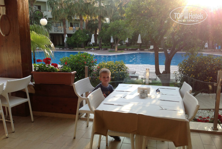 Питание в отеле хорошее, всего хватает (кроме утреннего омлета, за которым выстраиваестя очередь, это, я считаю, ненормально, так как омлет - это не какой-то деликатес). Мясные блюда, фаршированные овощи, гриль, морепродукты, рыба, сладкое, море фруктов. Пахлава и булочки так себе. Такой вкусной печенки на гриле, как здесь готовили, я вообще нигде не ела. Недостатка в чем-либо не замелили, кроме отсутствия совести у наших туристов, которые могут набрать горы еды, скушать 5-ю часть, а остальное официант выбрасывает. Кстати, официанты - большие молодцы, постоянно убирают со стола освободившуюся посуду, меняют скатерти моментально. Мороженое очень вкусное, но за ним очередь, иногда большая, иногда очень большая (думаю, как везде). Очень всусная пицца в снек-баре. Посуда иногда, дейсвительно, попадается не очень чистая, видимо в посудомоечный машины мало моющих средств насыпают, бокалы не блестят.