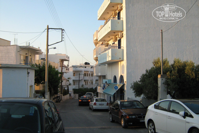 Мой тур с 28 июня по 8 июля 2013г. Отель расположен в центре Херсонисоса, но в глубине от центральной улицы. И это хорошо. Не шумно по вечерам(если не считать ночные вопли российских туристов, но они везде вопят одинаково громко). По прибытии в отель в 10 ч. утра заселили сразу! Скромно, но чисто,все работает,даже телевизор с российским первым каналом. Все остальные блага за доплату. Жарко не было. Кондиционер не понадобился. Холодильник тоже не нужен . Холодный свежевыжатый сок , воду и т. д. всегда можно купить рядом в магазинах или в баре отеля.Брала холодильник перед отъездом-5евро в день для сохранности сыров(они натуральные и отличного вкуса).