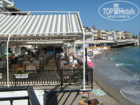 Территории у отеля нет. Есть внутренний дворик с бассейном и лежаками, а также большой холл с баром, где все собираются. До моря рукой подать. Перешел улицу и через три дома-берег городской бухты, весь в маленьких пляжиках-выбирай любой. Зонтик и лежак-платно. Не хочешь-лежи на галечке, она мелкая, не острая - никто слова не скажет. Недалеко есть пляж Стар Бич с мелким песочком, оборудованный очень по - европейски. Выбор большой, это и интересно. Каждый день - новый пляж!