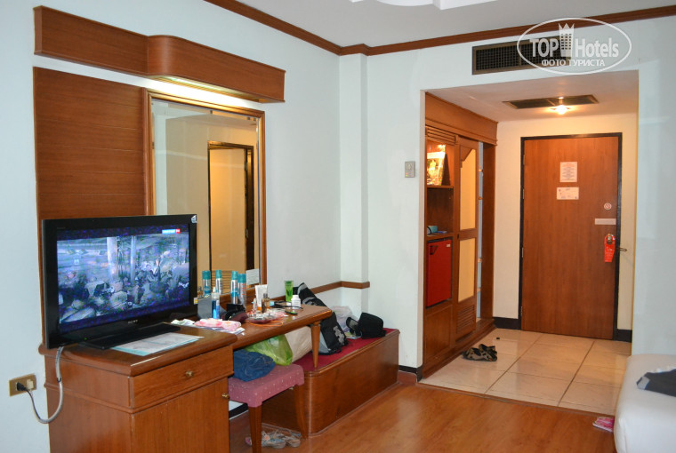 Отдыхали в этом отеле с 17.04.13 по 26.04.13. В отель приехали с большой задержкой, был Сонгкран (Тайский Новый Год), в городе были жуткие пробки, разместили очень быстро. Порадовало, что нет депозита. Номер на 7 этаже, в основном корпусе. Номер скромный, живности в виде клопов не было, но позже на ванной наблюдали муравьев, это неизбежно, все носят в номер еду, нам они не особо и мешали. Уборка ужасная, мусор вынесут и все. Один раз заменили белье на рваное, поменяла в этот же вечер, чтобы при выселении не было к нам претензий. Кстати, при выселении наблюдали картину, как требуют деньги за испорченное белье. Напор воды плохой. Кондиционер работал очень шумно. Балконов нет, оказалось не удобно. В номере ничего не пропало, деньги оставляли в сейфе на ресепшен. Что касается расположения отеля. В самом центре, удобно, все рядом. Море нас волновало меньше всего, я не рискну купаться даже на Джомтьен. Отличный выход -острова. Бассейн в отеле так себе, мы в нем купались разок, скукота, даже музыки нет. Вынужденно провели в отеле день. На улицу выйти было не возможно, все обливали холодной водой со льдом-Новогодняя традиция. Завтраки в отеле сносные, в самом конце приелись. Отель выбирали спешно, ехали по горящей путевке. Отель не для времяпрепровождения, а лишь переночевать, что нам и требовалось. В Тае потрясающая экскурсионка, отличный шоппинг и тп, поэтому считаю, что за отель нет смысла переплачивать. При других обстоятельствах оценки отеля были бы ниже.