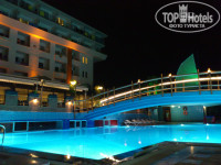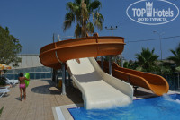 Территории как таковой нет - то есть пальмы, кактусы растут - но погулять между ними не удастся, есть небольшой зеленый уголок на детской площадке (ее фото соответствует размешенному в описании отеля). Но все это опять же не беда - можно сходить погулять в Конаклы (5-7 минут хотьбы) или вообще създить в Аланию на пляжи Клеопатры (15 км). 2 заявленые горки работают исправно (даже больше по времени, чем написано в описании) - бойтесь немецких детей, прячущихся внутри витой горки (налетала на них раза три, один раз налетела на мамашу с трехлетней девочкой на руках, которая решила постоять под выходом из этой горки - странные эти немцы...). С горок скатываешься в бассейн глубиной 120см (такая же глубина в любом аквапарке). Если катиться вдвоем паровозиком, второй может удариться об дно, так что не советую эспериментировать. Здесь же проводится акваэробика. Второй бассейн имеет глубину 150см в любой точке. Крытый бассейн также 150см, вода в нем похолоднее.