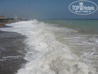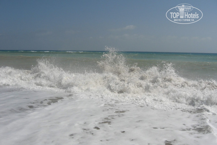 Пляж находится в 5 минутах хотьбы, море чистое, но при заходе и выходе можно наткнуться на подводные камни, они не высоки, но пораниться можно, особенно когда волны, поэтому купаться лучше правее.