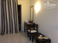 Чистота, красота, номер около 17 кв.м, две полуторки кровати, по бокам тумбочки, над кроватью картина по бокам картины ночнички, холодильничик маленький, но морозит как зверь, телевизор плазма 8 и 9 канал на русском языке, столик журнальный, столик с зеркалом, балкон закрывается на жалюзи и стекленной дверью, на балконе столик и два кресла пластиковых, что еще нужно?