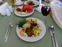 Еды много, еда очень разнообразная, постоянно было несколько видов мясных блюд. Вечером готовят шашлыки и рыбу на гриле.