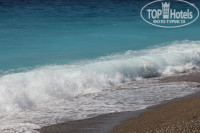 Море средиземное, чистое, чистое. Видно дно и камушки)) Дорога к морю занимает ровно пять минут, пляж галечный, что конечно, немного неудобно, больно ногам. Но можно одевать специальные резиновые тапочки. Сразу говорю, что если утром идете на море, нужно заранее идти и занимать лежаки, потому что к 10 часам свободных мест там уже нет. После обеда картина лучше, лежачки найти можно. Лежаки и зонтики бесплатные, также катамараны, лодки тоже. Единственное что неудобно, что на пляже нет бара, но водичку можно брать с отеля, ну либо покупать что-то в маркете, кторый находится минутах в 10-ти хотьбы. Мы делали так. Оставляли пустые бутылки, которые нам приносили в номер (Каждый день по бутылке питьевой воды). Потом в эти пустые бутыли наливали воду в баре у бассейна и топали на пляж.