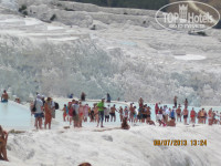 Только,что вернулись из этого отеля.Мы в восторге!!!Так как не очень избалованы сервисом, раньше отдыхали в Европе , нам все очень понравилось.Размещения к сожалению пришлось подождать с 10.00 до 13.00 так как не было свободных номеров,и номер убирали после выселения,а выселение в 12.00.За это время мы успели и позавтракать и пообедать. Питание замечательное,особенно ужины.Всегда есть свободные столы и нет никакой толкучки,возле бассейна перед обедом легкий перекус и также в 17.00.В А-ля карт ресторан записывают на один бесплатный ужин, тех кто более 7 дней.Там нам не понравилось очень перченая пища.Персонал довольно приветлив,некоторые говорят по русски,даже официанты.На рецепшен через день работает русская женщина которая помогает по любым вопросам. Место очень красивое,рядом набережная по которой вечером все гуляют.Бассейн замечательный ,проблем с лежаками и у бассейна, и у моря не разу не испытывали и не доплачивали не разу,у бассейна они вообще сложены возле будки анниматоров и за горкой,бери сколько хочешь и ставь на свободное место,также как и зонты всегда стоят свободные у стенки. Море хорошее чистое ,но купаться лучше в сланцах,так как заход не очень комфортный.Можно за 370 $ съездить в Израиль на однодневную экскурсию, за 80 $ на однодневную экскурсию на греческий остров Родос ( у кого шенген) у кого нет на 2 дня они оформляют временную визу и стоит уже 370 $.(цены тур-оператора Корал-Тревел. Брали поездку в Поммукале, ужасно утомительно с 4.30 до 20.00.Три часа туда с завозом на мраморную фабрику,где продают изделия из оникса; завтрак жуткий,туда привозят в 12.00 ,там такая жара,место открытое в горах,и очень много народа ,приезжает автобус за автобусом в бассейне Клеопатры народу,как в бочке с селедкой,конечно красиво очень ,но из-за толчеи и жары появляется только одно чувство отсидеться в тени.Обратно после жуткого обеда,еще завозили на дегустацию вин,с их покупкой и за текстилем.Приехали сильно уставшие и голодные,и на ужин пошли ,как на праздник.На обзорной экскурсии по городу завозят на кожанную фабрику,на производство локума "Доктор-Локум"( он там самый вкусный) и магазин золота,оно там дороже чем в других местах в городе.Климат в городе очень хороший ,после 19.00 вообще очень приятная прохлада.В 23.00 возят на улицу BARSTRIT и в 3.00 возвращают.Мы полны впечатлений и восторга с удовольствием приехали бы еще раз.