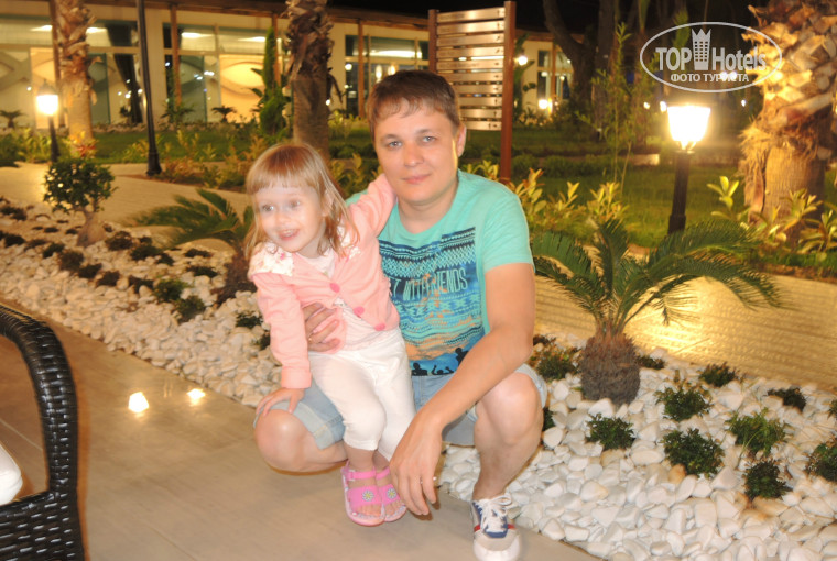 Территория небольшая, но красивая и удобная, т.е. все есть для комфортного отдыха: два больших бассейна, два для малышей, водные горки, детская площадка с качельками, горками и мини-клуб, очень там интересно всегда много детей (а это показатель), бары, снек-бары, хамам, амфитеатр, где работают потрясающие аниматоры-веселые отличные ребята, выкладываются каждый вечер на все 200 процентов, шоу программы очень интересные, зажигательные, даже мой серьезный муж участвовал в конкурсах, в общем, зажигали и смеялись от души каждый вечер. Огромный привет Серхану, Ксюше, Нине, Гале, Лене (от татар-кызы) !!!!