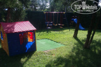 Для детей была на территории маленькая площадка. Пластиковый домик, горка и три качели. Нельзя назвать детским уголком, НО мои дети оттуда не вылазили. Поскольку в домике – интересно, горка маленькая пластиковая и совсем не скользила. Они не катались с горки, они ходили пешком на горку и спускались по ступенькам. Им очень нравилось))) А качели очень необычные. Веревочная (закручивалась), вторая как лодочка, для двоих, а третья, можно сказать как маятник, садятся двое и держатся за ось. С площадки все время забирали детей силой.