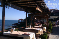Было два бара на улице и внутри перед входом в ресторан, но мы не были их клиентами. Один вечер посидели. Заказывали кампари 8лев за 2 напитка, ром, не помню цену и фреш, 8лев за один. Чай 1,5лева, кофе 2,5лева.
