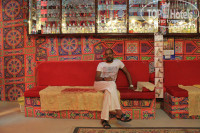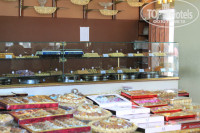 Еда была нормальной, никаких признаков отравлений ни у меня. ни у детей. Правда салаты мы не ели. Достаточно овощей свежих, политых оливковым маслом. И тушеных. Разных видов. Мясо - нечасто (да в такую жару его и не надо), курица и рыба - регулярно. Выпечка вкуснейшая!!! Халва! Несколько видов сыров. Хлопья с молоком для детей. Понравился анисовый чай (иногда пили с молоком), отлично утоляет жажду. В лобби-бар старшие дети бегали попить кофе и горячий шоколад.