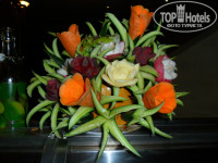 Летали от Лабиринта. Розовый браслет означал 24 часа в сутки алкоголь и номер супериор, бар к сожалению 24 часа не работает , так что это рекламная фишка Лабиринта, разместили в обычном стандарте, на втором этаже №216, от ресепшена недалеко и ресторан рядом, скандал поднимать не стали, все устроило и жену уговорил остаться. Кровать сдвинули, можно спать и вдоль и поперек - супер. В номере все работало отлично, только минус много муравьев, травили таблетками от комаров, несколько раз ключ он номера приходилось программировать, спускаясь на ресепшен. Обрадовал уборщик сварганив огромный букет в номер, видимо был рад оставленным чаевым за свои обязанности, убирал сначала отлично, потом испортился, забывал пополнять туалетные принадлежности для душа. Каждый день пополнял запас воды на человека 1,5 литра, потом ему сказали хватит, так как скопилось аж 6 бутылок, вода в ванной без перебоев, пару раз вылетало электричество, где не бывает, обычное дело.
