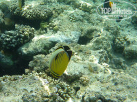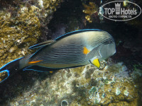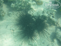 До моря надо немного пройти. Если хотите занять лежаки поближе к морю, идите с утра. Полотенца пляжные мы меняли 2 раза в день, утром и после обеда, причем все это без лишних вопросов. Ближе к обеду на пляже приносят пожевать (для тех, кто не наелся завтраком). Как правило это макароны с сосисками. Вход в море - камни. Есть один большой риф на маленькой глубине, возле которого плавает полно рыб. Я отплывал с маской подальше на глубину, там море почище и красивее. Постоянно кормили хлебом рыб, едят прямо с рук.