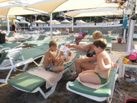 Территория: небольшая, но ухоженная и все под рукой. Мы сначала разочаровались, что все так компактно (в прошлом году отдыхали в Сиде в отеле Фулия - там огромная территория и пляж), но потом даже понравилось: ребенок всегда на виду. Пляж же очень узкий и маленький, лежаки расположены очень близко друг к другу, но это не напрягает: мы все перезнакомились и устраивались вполне нормально. Есть еще дополнительные лежаки, кроме тех, которые на песке, на двух пирсах. Место все всегда находили.