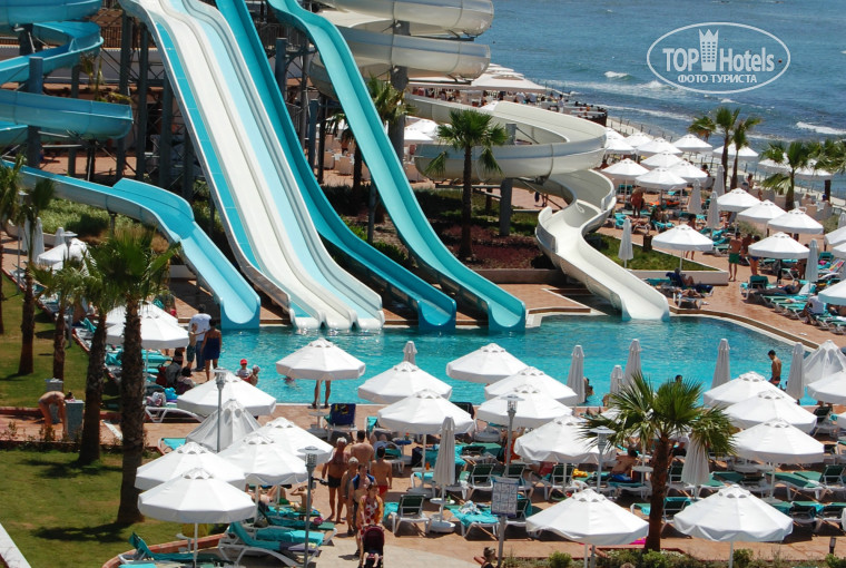 Мы ездили в этот отель с семьей, с мужем и детьми.Бронировали честно скажу на свой страх и риск, все таки отель новый(открытие было в апреле этого года).Возможно ремонт еще не закончен?!Менеджер ничего про отель конкретно рассказать не могла.Только картинки с сайта и все. Но мы решились...и оказались в сказке!Уже в холле мы открыли рот от удивления...Холл огромный..и бар...и библиотека...комната отдыха.. и множество уголков в различных дизайнерских исполнениях (мне кажется - это фишка отеля смешение стилей).Нас быстро расселили несмотря на большое количество гостей!Номер, конечно АХ!Но мы решили исследовать территорию, тем более, что дети рвались на свободу!Территория сразу скажу не зеленая,но на радость и взрослым и детям особенно-БАССЕЙНЫ...их на территории если не ошибаюсь 10!Маленькие и большие, с баром и без. В общем не заметили как пришло время обеда!Огромный ресторан с несколькими залами опять таки в разных стилях! необыкновенно красиво, а главное очень вкусно!И знаете наслаждаться вкусной едой в изысканной, но не пафосной, обстановке очень приятно!На каждом шагу в этом отеле тебя "преследует" красота...особое внимание следует уделить люстрам.Великое множество и разнообразие этих волшебных созданий в отеле!Все-таки красивые вещи не мало значат в нашей жизни!Про пляж.Он через дорогу.Пройти к пляжу можно по мосту, спуститься к нему можно по лестнице или на лифте.На пляже есть горки, бассейн, шезлонги, зонтики.Вход в воду мелкая галька.Но на пляж совсем не хочется, и не потому, что нужно идти через дорогу,а просто не хочется покидать территорию отеля.Кажется, что ты находишься на огромном лайнере!Отель находится в 20 минутах езды на такси от Аланьи.Это плюс. Аланья - прекрасное место для прогулок по городу,для морских прогулок на яхте,для походов по магазинам.